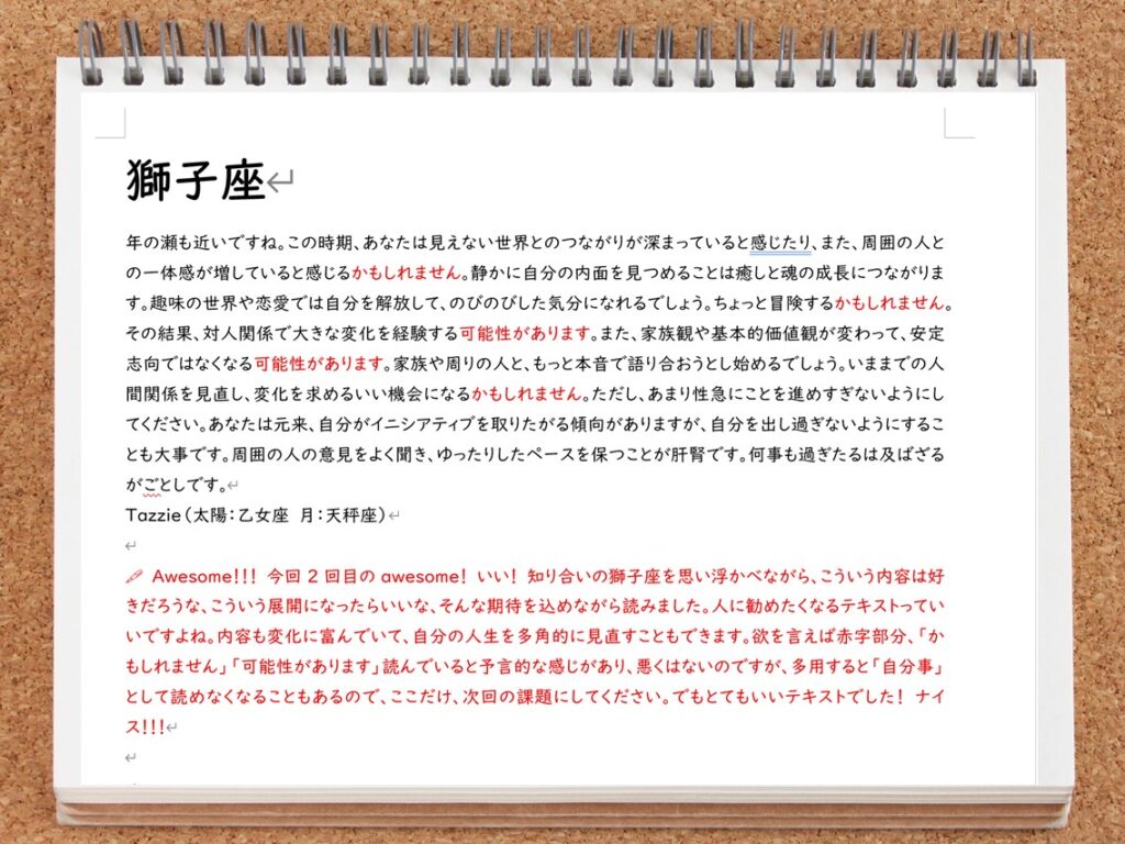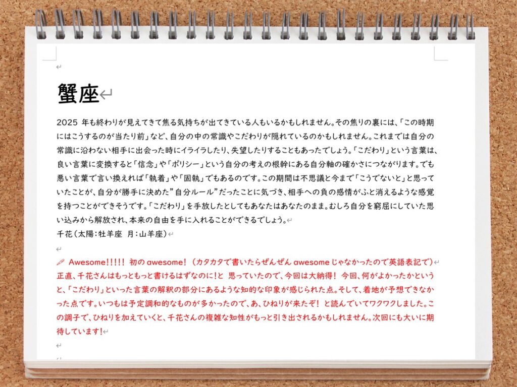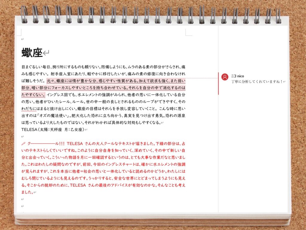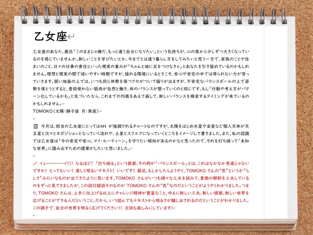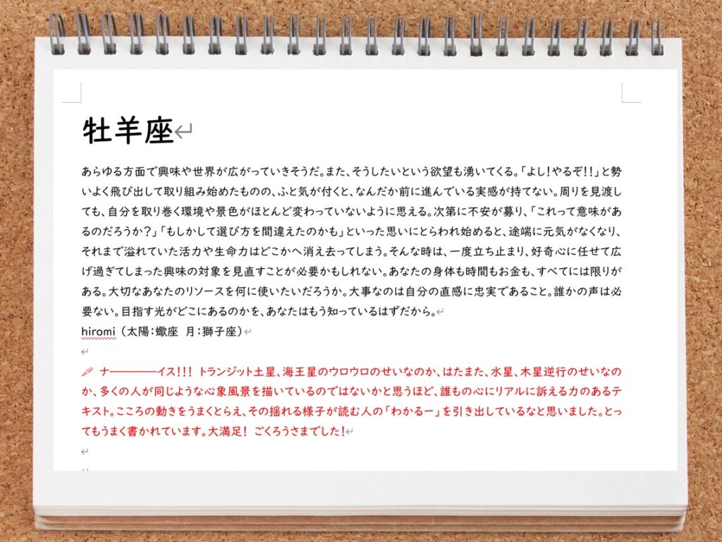 個性あふれる12人が語る各星座の星宙予報を、nicoが心理占星術をベースに赤ペン添削!