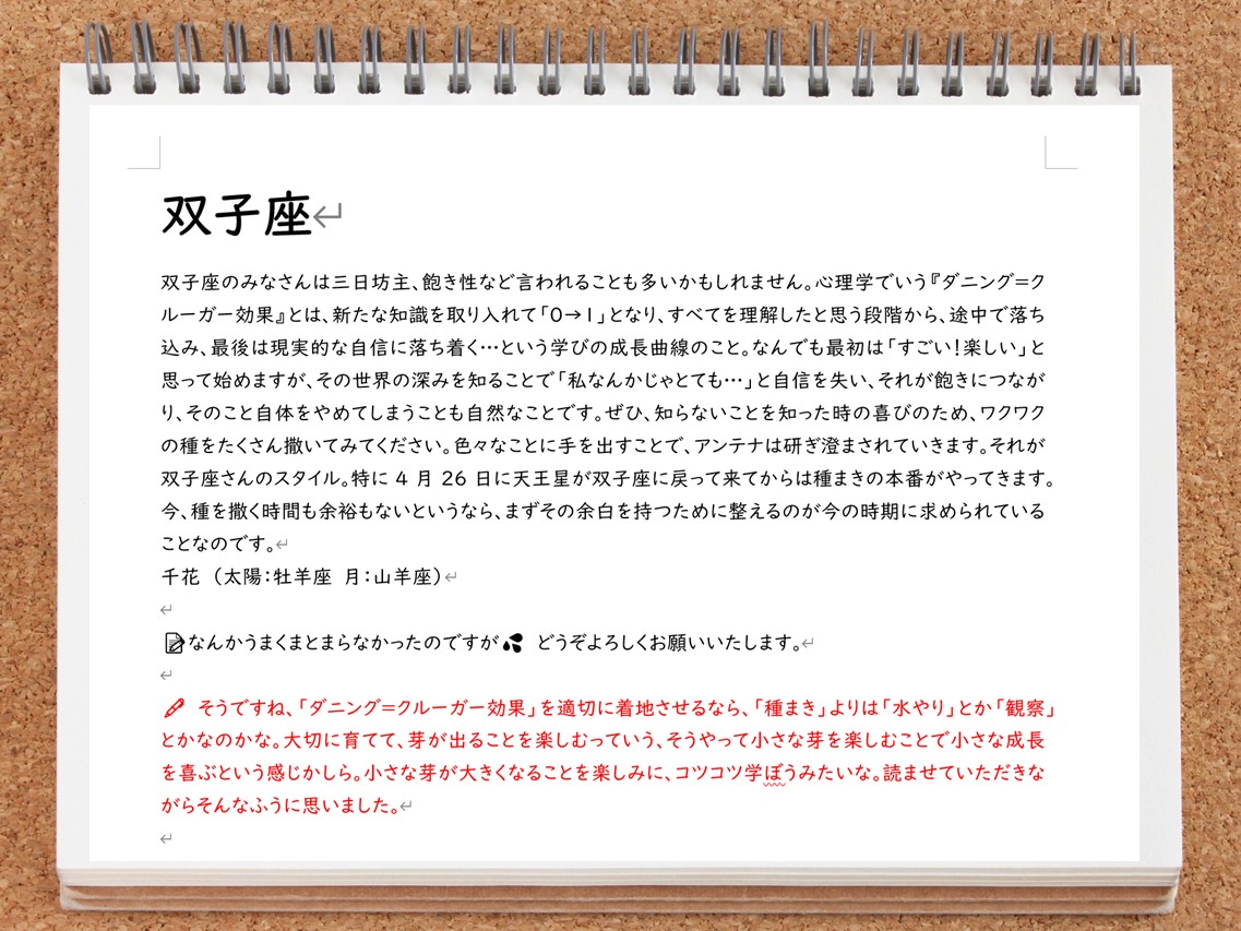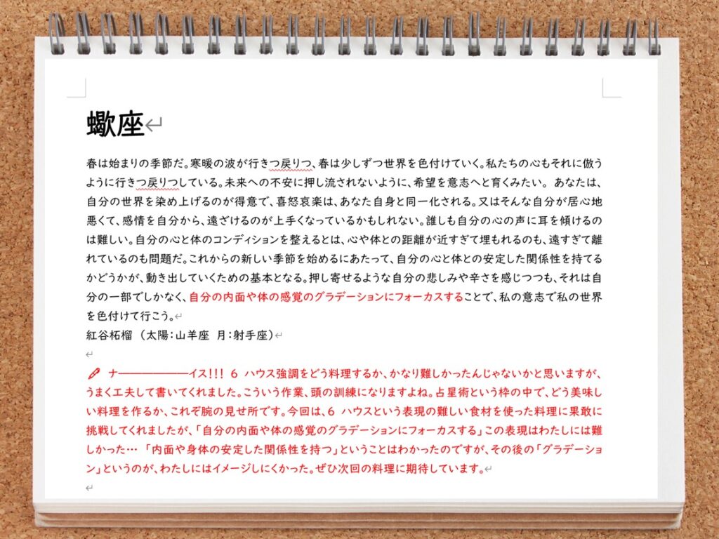 個性あふれる12人が語る各星座の星宙予報を、nicoが心理占星術をベースに赤ペン添削!